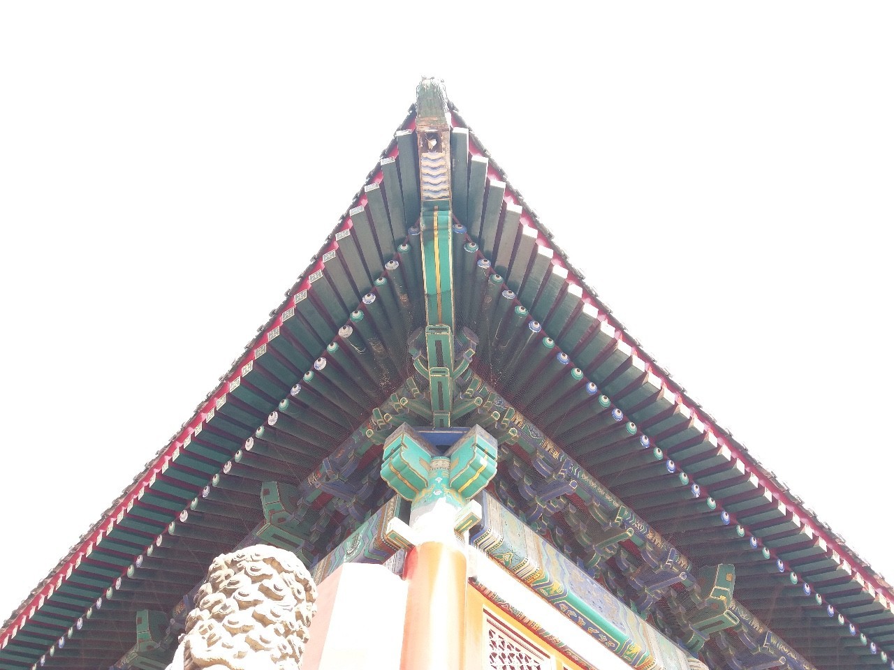 在屋檐上不仅有精巧奇妙的斗拱,还有许多复杂精美的结构,根据屋檐的复杂程度和房檐上仙兽的数量,就能判断这栋建筑的地位。虽然屋檐的规格不同,但是屋檐的形式和其上描绘的花纹却都是“规定好了”的,作业中的故宫角楼中屋檐的花纹和承德避暑山庄中建筑屋檐的花纹就像是复制的一样,极其具有辨识度。不得不佩服古代工匠的智慧,能让建筑做到如此统一,但每一个却又独一无二。