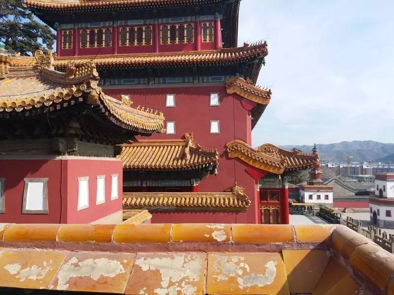 普宁寺和避暑山庄不同,真正显示出了皇家的气派和威风,同时又是汉式建筑和藏式建筑的结合体,看起来别有一番趣味。藏式建筑不同于汉式建筑,它看起来更加古朴柔和,如果说汉式建筑是太阳,那么藏式建筑就是月亮。