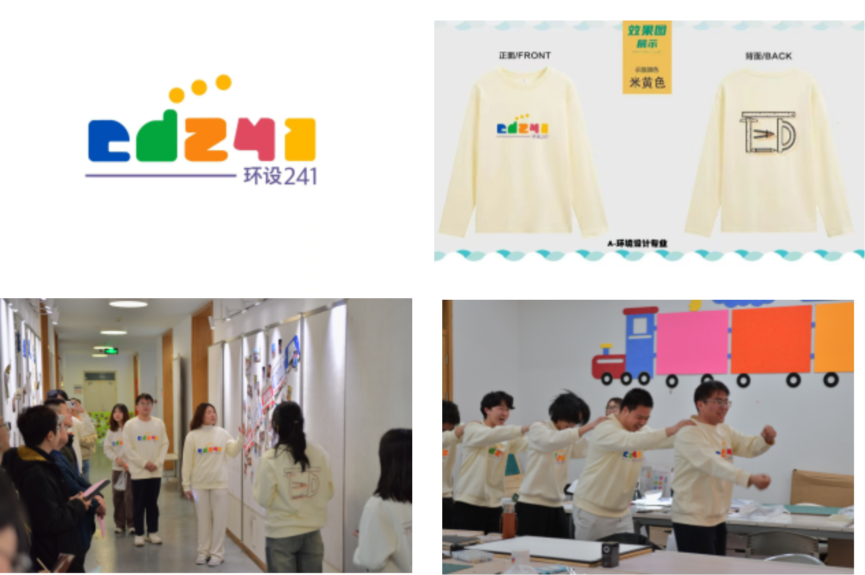 建241班的主题是“建自我,筑未来”。展示墙的镜子就如同我们在自我构建中,不断地自我反思、自我认知,发现自身的优点与不足,这是“建自我”的起始,是我们在心灵的镜子中探索内在本真的过程。而在镜子的四周,一幅山水画徐徐展开。那峰峦叠嶂、流水潺潺、云雾缭绕的山水画卷里,蕴含着无尽的可能与希望。每一笔勾勒、每一抹色彩,都像是我们为未来绘制的蓝图。班徽取自公司开学的新生礼盒中的卡套颜色,寓意着创造与活力。考虑我们平时最需要的服装就是围裙,所以班服便采用围裙的形式,创意又实用。建 241 用《爱乐之城》这曲活力且艺术的舞蹈,用我们蓬勃的活力,向老师们展示我们的青春光彩。
