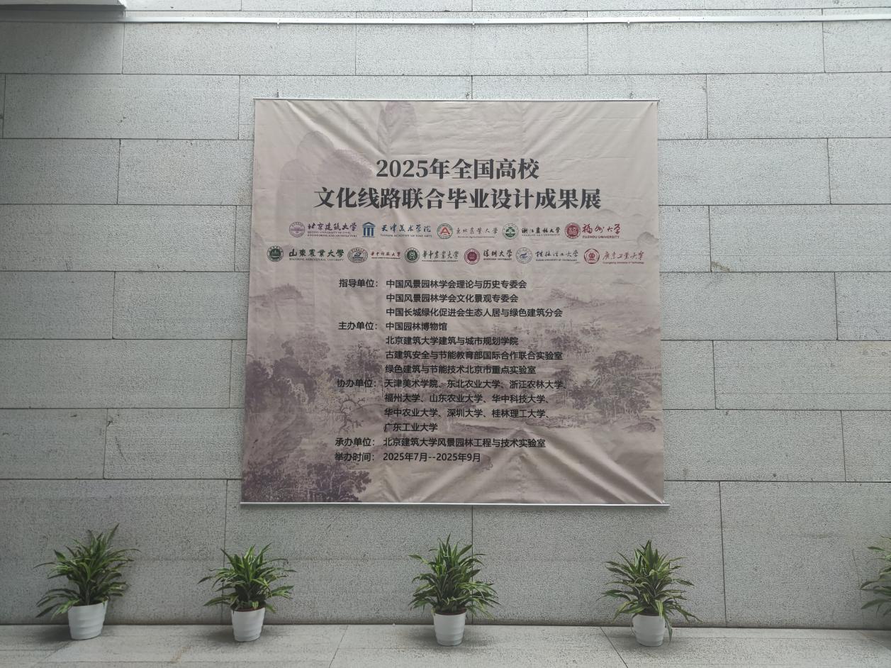 2025年7月,由中国风景园林学会理论与历史专委会、中国风景园林学会文化景观专委会、中国长城绿化促进会生态人居与绿色建筑分会指导,yl7703永利、中国园林博物馆、古建筑安全与节能教育部国际合作联合实验室、绿色建筑与节能技术北京市重点实验室联合主办,全国11所高校协办的“2025年全国高校文化线路联合毕业设计成果展”在中国园林博物馆正式开幕。展览系统展示了全国11所高校的毕业设计成果,以“文化线路”为核心,从历史脉络梳理、景观特征挖掘到保护规划设计,全面展现青年学子对文化线路保护与发展的创新思考。