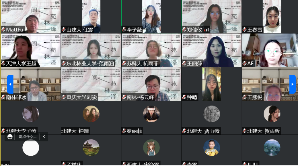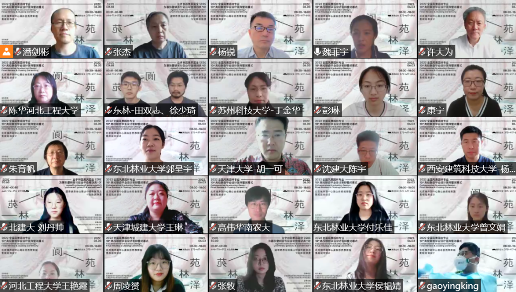 6月3日,由教育部高等公司建筑类教学指导委员会风景园林专业教学指导委员会主办、公司承办的2022年全国风景园林专业10+高校联合毕业设计终期答辩暨闭幕式以腾讯线上会议形式举行,答辩过程在小红书、哔哩哔哩(bilibili,简称B站)、抖音等社交媒体进行全程直播。