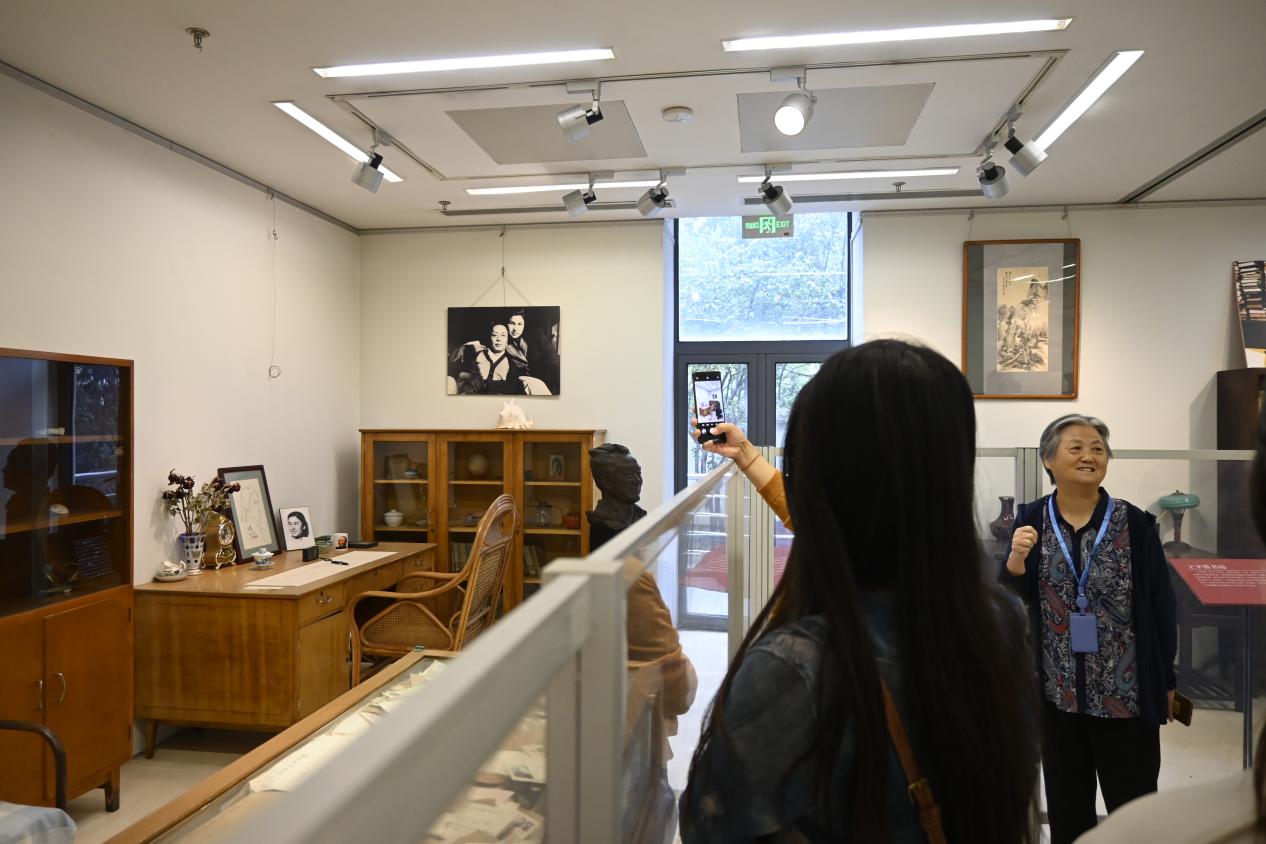 位于北京市朝阳区的中国现代文学馆,是中国现当代文学的资料中心和研究重镇。其建筑本身融合了传统与现代的设计语言,馆内收藏了大量现当代文学大师的手稿、书信、书籍及珍贵影像资料,构成了一个极具人文气息与历史厚度的物理空间。师生们首先参观了“山河迹忆——手稿里的抗战中国”主题展览,展览以文学馆馆藏的近300件珍贵手稿、书信、日记、报刊、图书版本为载体,以历史记忆为脉络,生动呈现了14年抗战的壮阔历程与中国共产党的中流砥柱作用。随后,在讲解员的引导下,参观了“中国现当代文学展”、“作家书房复原展”等主题展厅。大家不仅细致观摩了文学巨匠们的创作真迹,感受字里行间的情感与思想张力,也特别关注了文学馆的建筑空间布局、展陈设计、光影运用及环境氛围的营造,从设计学的专业视角审视空间如何叙事、如何与展品内容相得益彰,共同构建出一个沉浸式的文化体验场所。