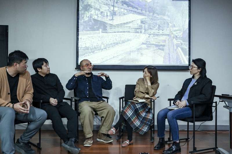 在座谈阶段,任丛丛、徐跃家、任中琦、孙立娜四位老师提出以下问题:在珑府生活体验中心项目中,如何实现49天快速建造、对未来的看法、如何通过沟通打开局面,让甲方接受建筑师的想法、如何实现木结构的可靠性、什么是结构的真实性。在自由提问阶段,同学们踊跃发言,提出高科技和建筑设计的紧密结合令建筑系员工的培养变成了“工具人”的困惑、在东庵上村儿童之家结构处理是否违背柯特.西格尔所说的“真实性”、关于建构相关书籍和网站推荐、木结构如何计算等多个问题,罗宇杰老师逐一详细解答,并对过去的实践进行总结。