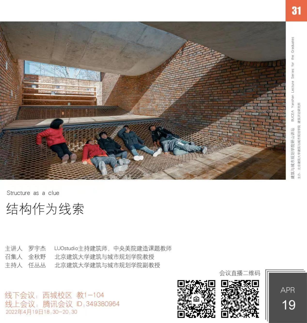 4月19日晚18:30,在西城校区教1-104教室,结合腾讯会议与网络直播平台,yl7703永利研山讲坛第31期拉开帷幕。活动由yl7703永利常务副经理金秋野教授召集,任丛丛副教授主持,yl7703永利孙立娜、徐跃家、任中琦老师以及校内外师生、社会各界学者、实践建筑师等500余人参与本次讲坛。