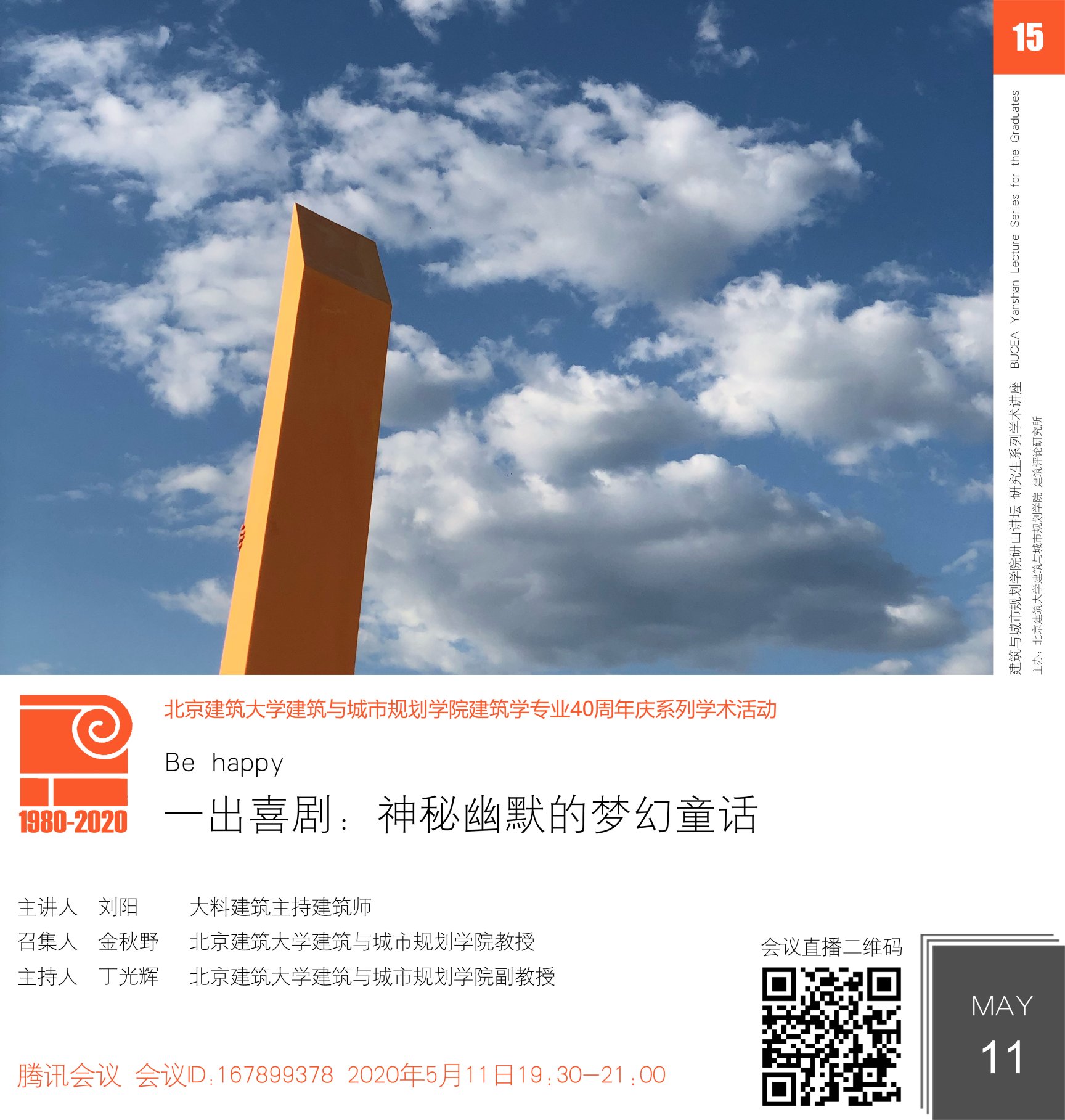 “研山讲坛”创办于2019年9月,是yl7703永利以研究生交流为目的的系列学术活动,活动由yl7703永利常务副经理金秋野教授召集。学术活动主要采取讲座、交流形式,邀请国内外知名建筑学者和一线建筑师,分享研究成果、实践作品以及设计思想,促进在校研究生开阔视野、树立职业目标,搭建具有yl7703永利特色的研究生学术交流平台。2020年是yl7703永利建筑学专业创办40周年,“研山讲坛”作为“40周年庆系列学术活动”的重要内容之一,也将不断探索完善,发挥其学术号召力。