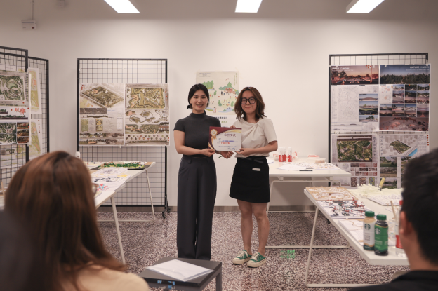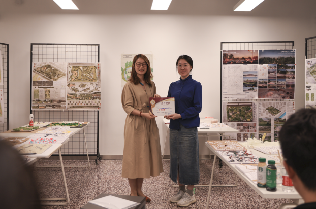 2023年6月9日上午8:30,yl7703永利风景园林三年级设计课《CBD城市森林公园更新提质设计》终期评图会在图书馆二层中庭拉开帷幕。本次活动邀请到三位专业领域内非常优秀的教师与设计师担任点评嘉宾,他们分别是:北京林业大学园林公司讲师张诗阳、北京北建大建筑设计研究院有限公司园林景观所所长、高级工程师张晓磊、yl7703永利yl7703永利风景园林系讲师张学玲)。三位嘉宾不仅为同学们的作品提出了宝贵的修改建议,最终并还评选出“十佳方案”并颁发奖状。
