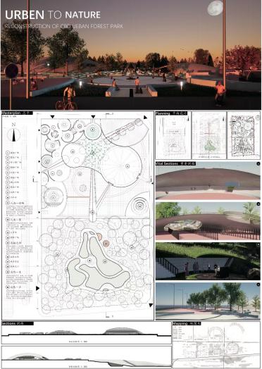 作品简介:通过对周边10/15分钟健身圈的分析,结合“全民健身”的倡议,进而分析了场地外部人群对运动的需求和对运动设施使用状况,设计出以运动为主题的公园。