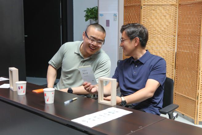 游戏环节「你来比划我来猜」将现场氛围推向沸点。教师们化身“灵魂画手”与“智慧解读师”,在限时挑战中迸发惊人默契。最终,第二组获胜,第一组接受“真心话答辩”,幽默提问与真诚回答间,展现教师团队鲜活可爱的另一面。