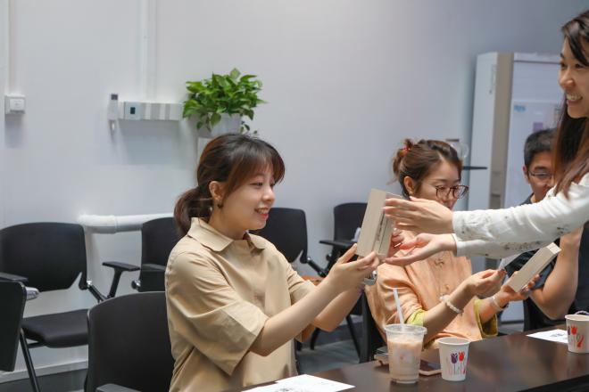 在“毕业纪念册特别版”互动环节中,为教师团队精心定制了19张手绘校园风景明信片,教师们以笔墨传递温情,在明信片背面互赠手写祝福,让纸页间的真挚情谊成为永恒印记。另外运用AI技术为每位教师生成专属卡通头像相框,当明信片嵌入相框中间卡槽时,传统同学录形式被赋予空间叙事的新可能,这份兼具艺术性与纪念价值的特别设计,也成为本月生日寿星专属的记忆珍藏。