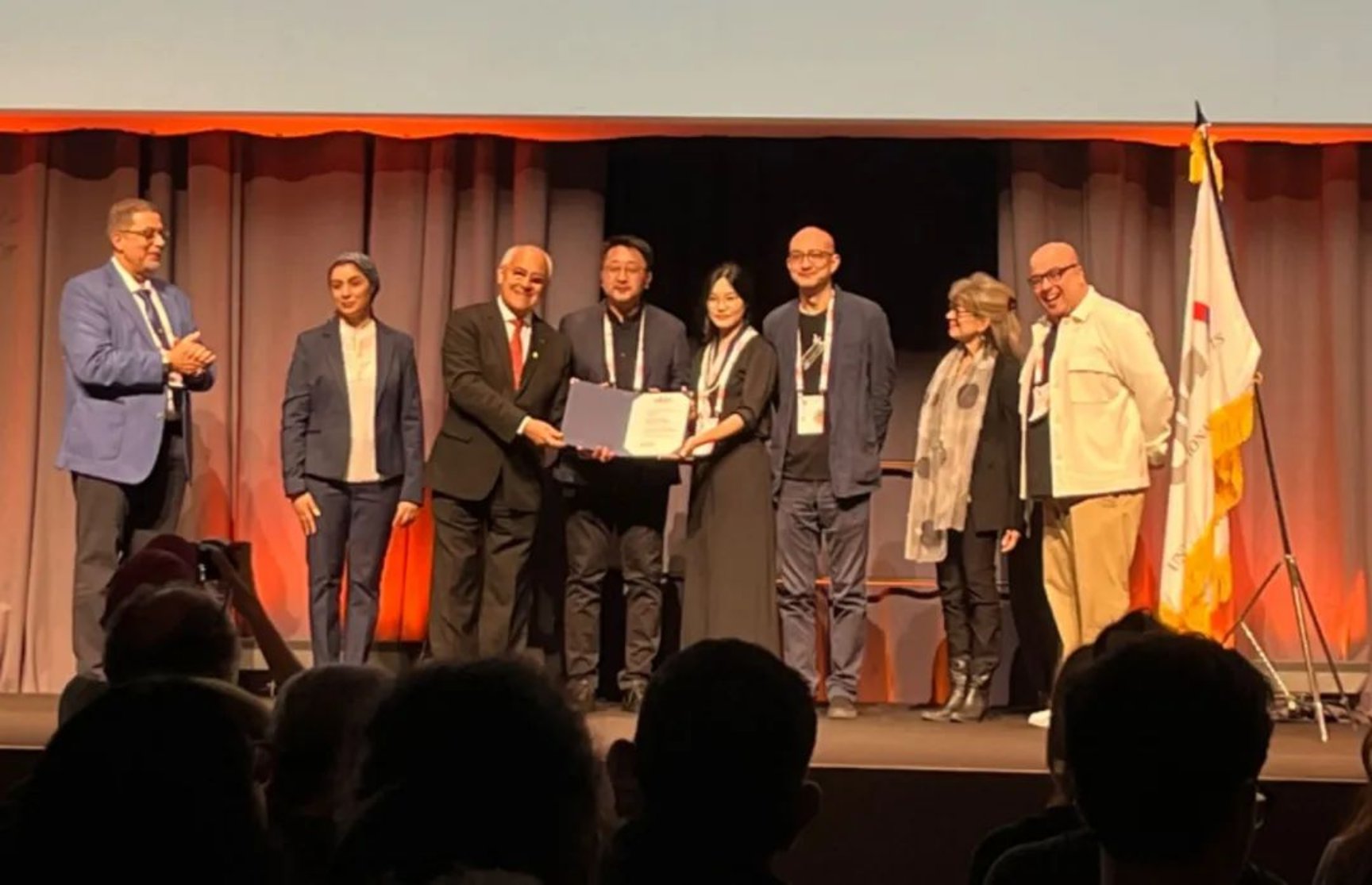 国际建协主席胡赛·路易斯(José-Luis Cortès)向公司团队颁发获奖证书