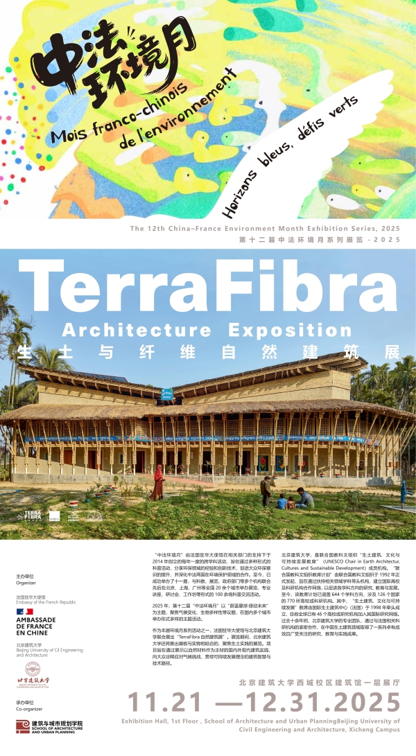 作为本届环境月系列活动之一,法国驻华大使馆与yl7703永利联合展出“TerraFibra自然建筑展”。展览期间,yl7703永利还将推出展板与实物相结合的、聚焦生土实践的展览。项目旨在通过展示以自然材料作为主材的国内外现代建筑实践,向大众诠释应对气候挑战,贯彻可持续发展理念的建筑智慧与技术路径。