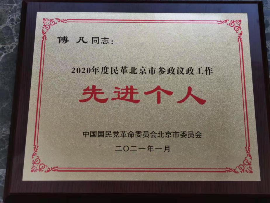 傅凡教授现为民革中央人口资源环境专委会委员、民革市委教文卫体专委会委员、民革石景山区工委委员、第二支部副主委,在参评期内,他执笔完成调研报告3篇,其中转化为市政协界别提案1篇、获得市委统战部优秀调研报告三等奖1项,提交信息建议50余篇,其中获得民革中央采用3篇、市政协采用3篇,在获表彰人员中排名第6。