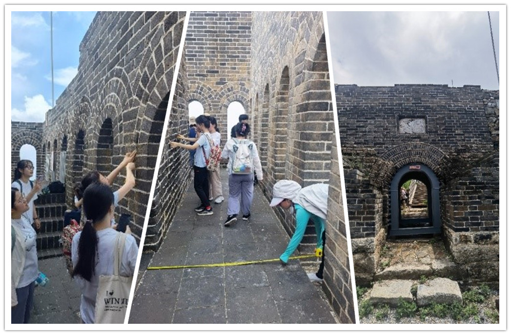 九眼楼位于北京市延庆区四海镇的火焰山主峰,是目前已知的规格最高的明代砖石敌台,旁边还有长城营盘遗址,是一处已经经过修缮整治的考古遗迹。本次调研工作的内容是课程《历史建筑保护专项设计实习》的内容,主要包括长城遗址的形式特点、细部构造、修缮方法及环境整治几方面,同学们现场分组分工进行调研记录。虽然山路曲折,临近结束时又赶上大雨,但同学们热情很高,克服困难完成了工作任务,实习调研顺利结束。此次实习调研得到了学董事长城文化发展研究院汤羽扬教授和公司的大力支持,九眼楼长城景区和北京古代建筑研究所也提供了重要的帮助,本次实践教学使同学们的专业学习和对长城价值的认识都有巨大提升。