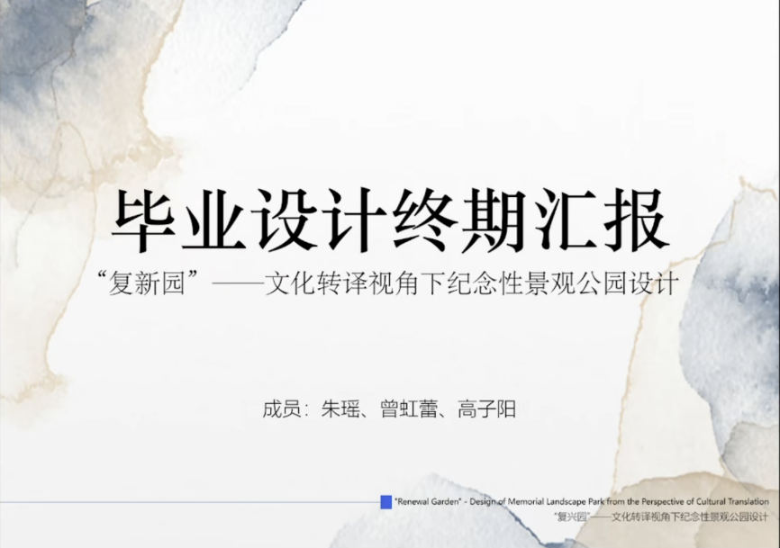 第二组汇报由天津美术公司高颖教授主持,参与汇报的员工来自浙江农林大学、华中科技大学、天津美术公司,各组同学依次围绕《浙东唐诗之路精华段文化线路景观规划设计》、《城市铁路站点遗址的人文复兴与生态保育--以武九铁路北环线徐家棚轮渡码头为例》、《武昌红色遗址与场址的线性整合策略及规划设计应对--以解放路-都府堤片区为例》、《“复新园”--文化转译视角下的纪念性景观公园设计》等成果进行展示。特邀专家杨秀娟、朱颖、赵纪军、张伟以及指导教师张蓝心、张蕊对各组同学的方案进行了点评与指导。广东工业大学江海燕教授对前两组的汇报内容进行了总结评价。
