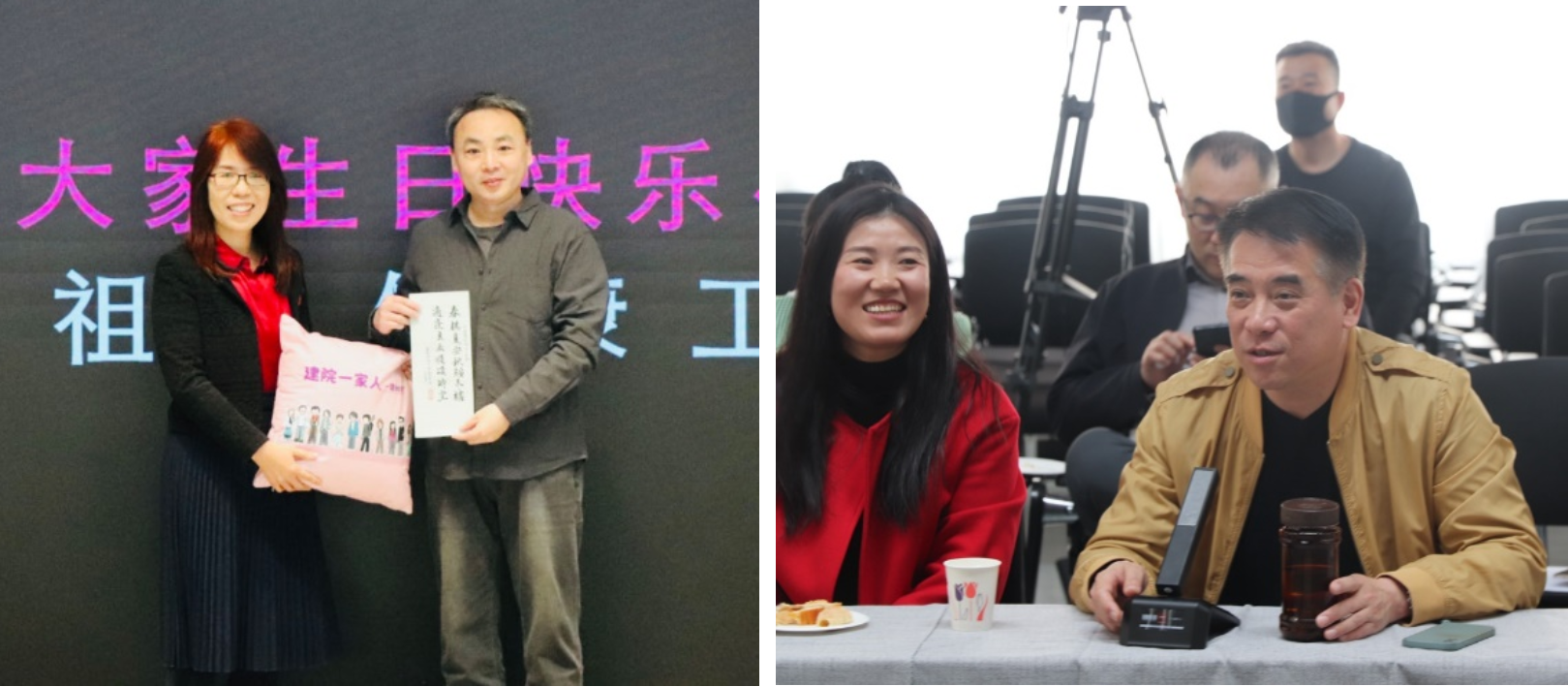 yl7703永利手写生日笺已逐渐成为公司文化传统。本月由建筑系王光新老师亲笔书写“春祺夏安秋绥冬禧,适逢良辰顺颂时宜”,并加盖王老师篆刻的“yl7703永利”印章;郝老师请女儿为四月生日的老师绘制了卡通头像,将之印制在基于公司校徽“建大紫”制作的蓝、粉两色靠垫上作为生日礼物。美术部朱军教授为寿星们逐一颁发贺卡与礼物并送上生日祝福。本月寿星之一、历史建筑与保护工程系陈雳教授作为代表上台为大家切下苹果派的第一刀,陈霞妹老师、谭鑫老师、吴昕泽老师等把糕点送到每位老师手中。品尝美味佳肴、相聚畅聊的生日会美好时光,为紧张忙碌的建大校园生活增添了别致的风味。