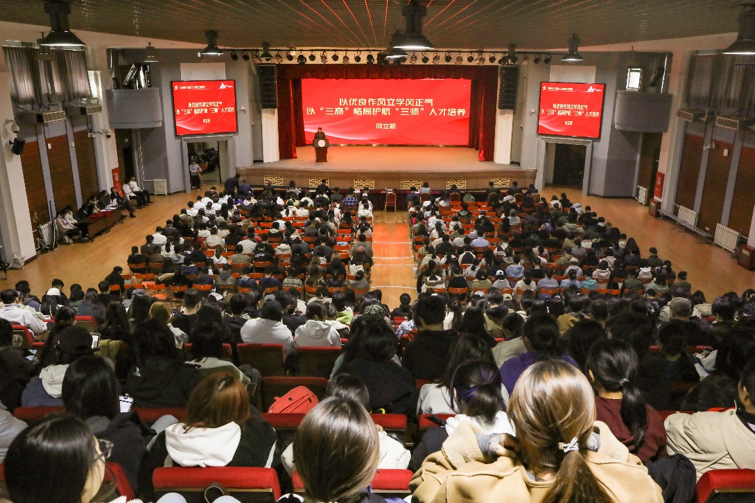 公司党委书记何立新围绕《以优良作风立学风正气 以“三高”格局护航“三师”人才培养》主题,为全体师生党员和2025级新生讲授专题党课,并作入党启蒙教育。