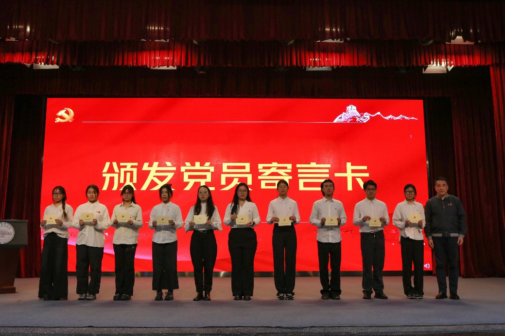 会上,公司党委书记何立新依次为新接收的预备党员颁发党员寄言卡。