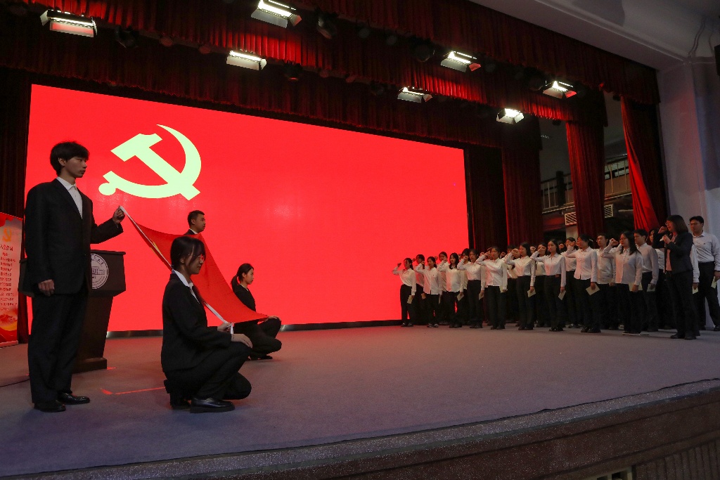 党委委员俞天琦带领全体新入党同志面向党旗,庄严宣读入党誓词。