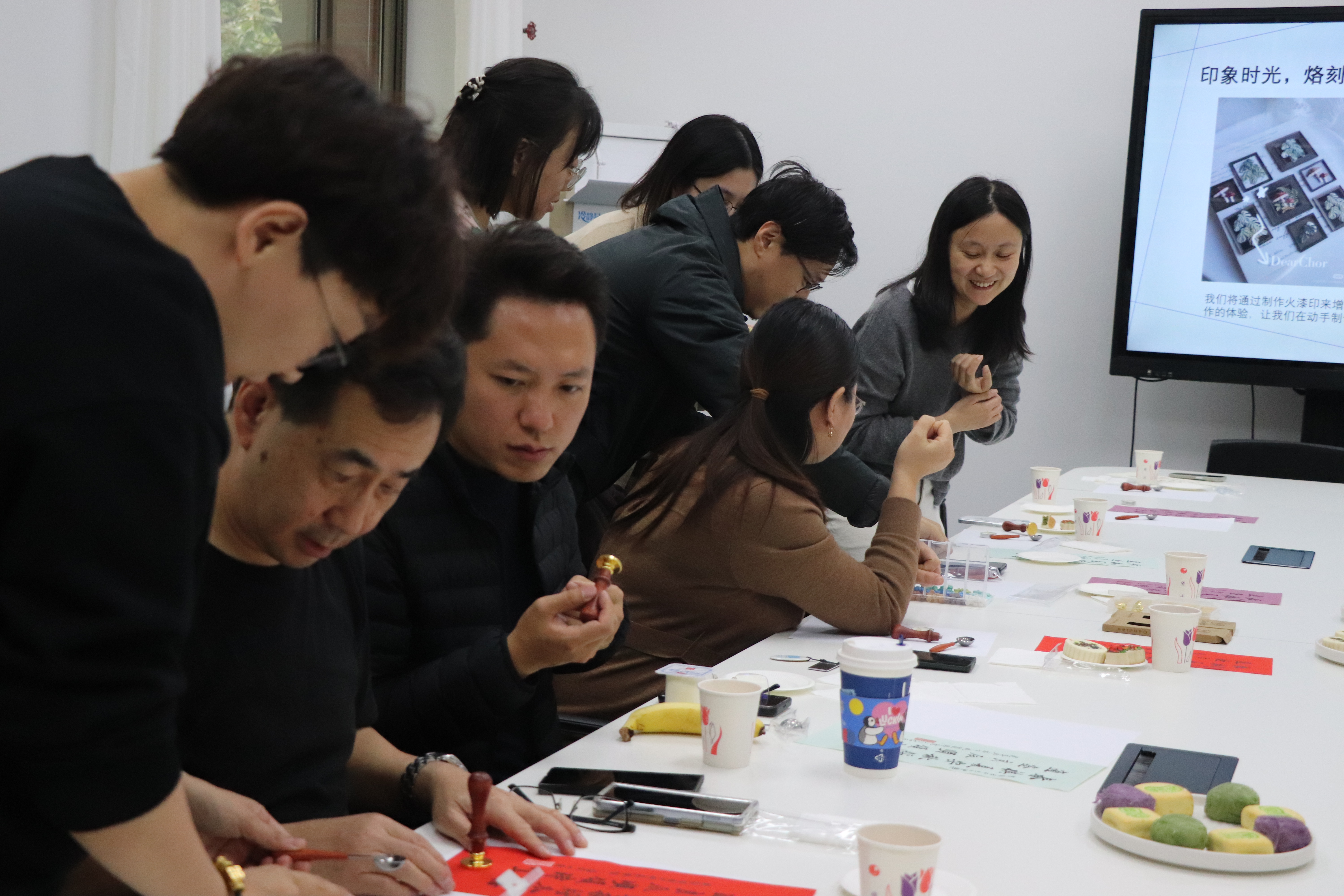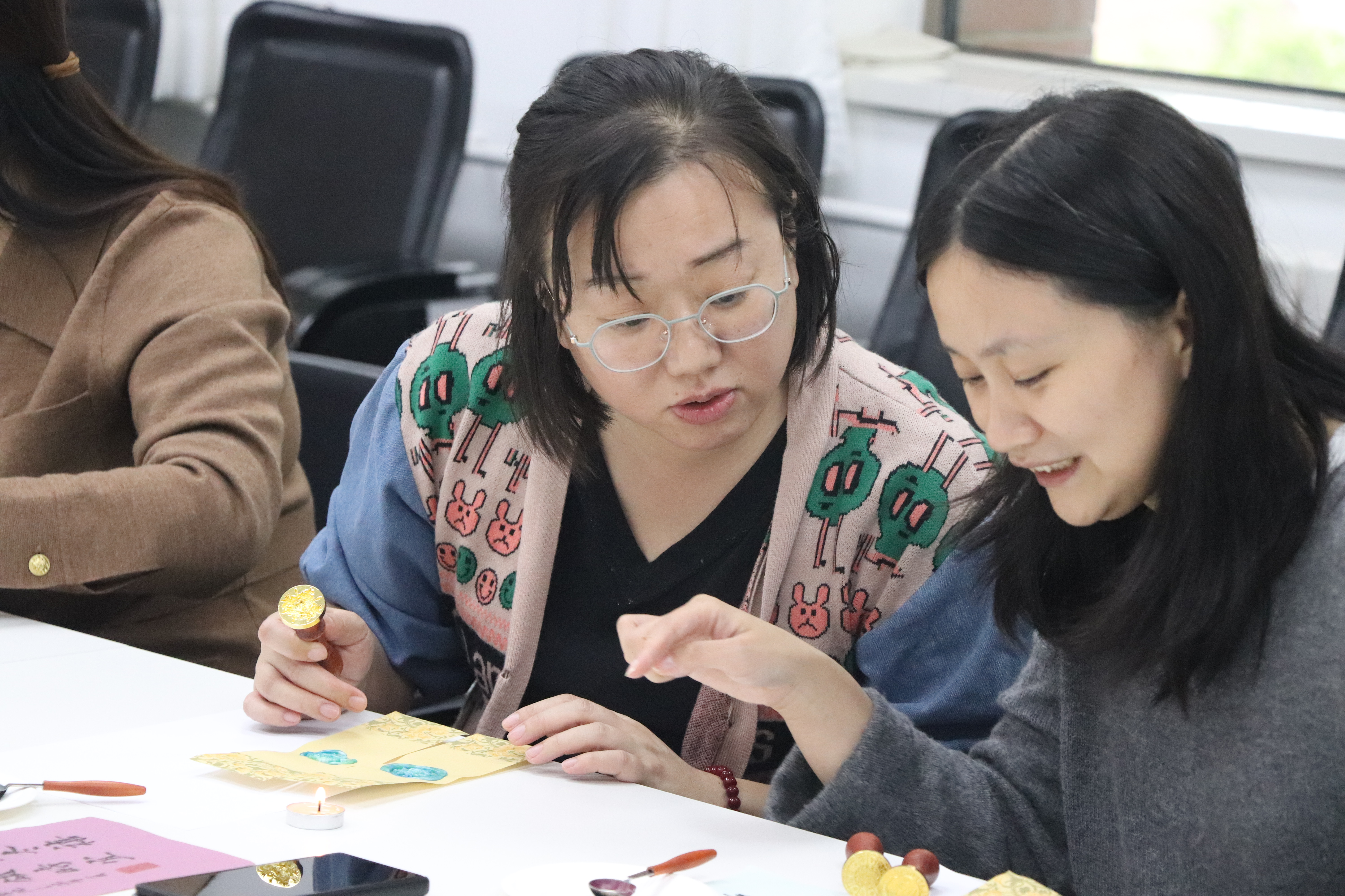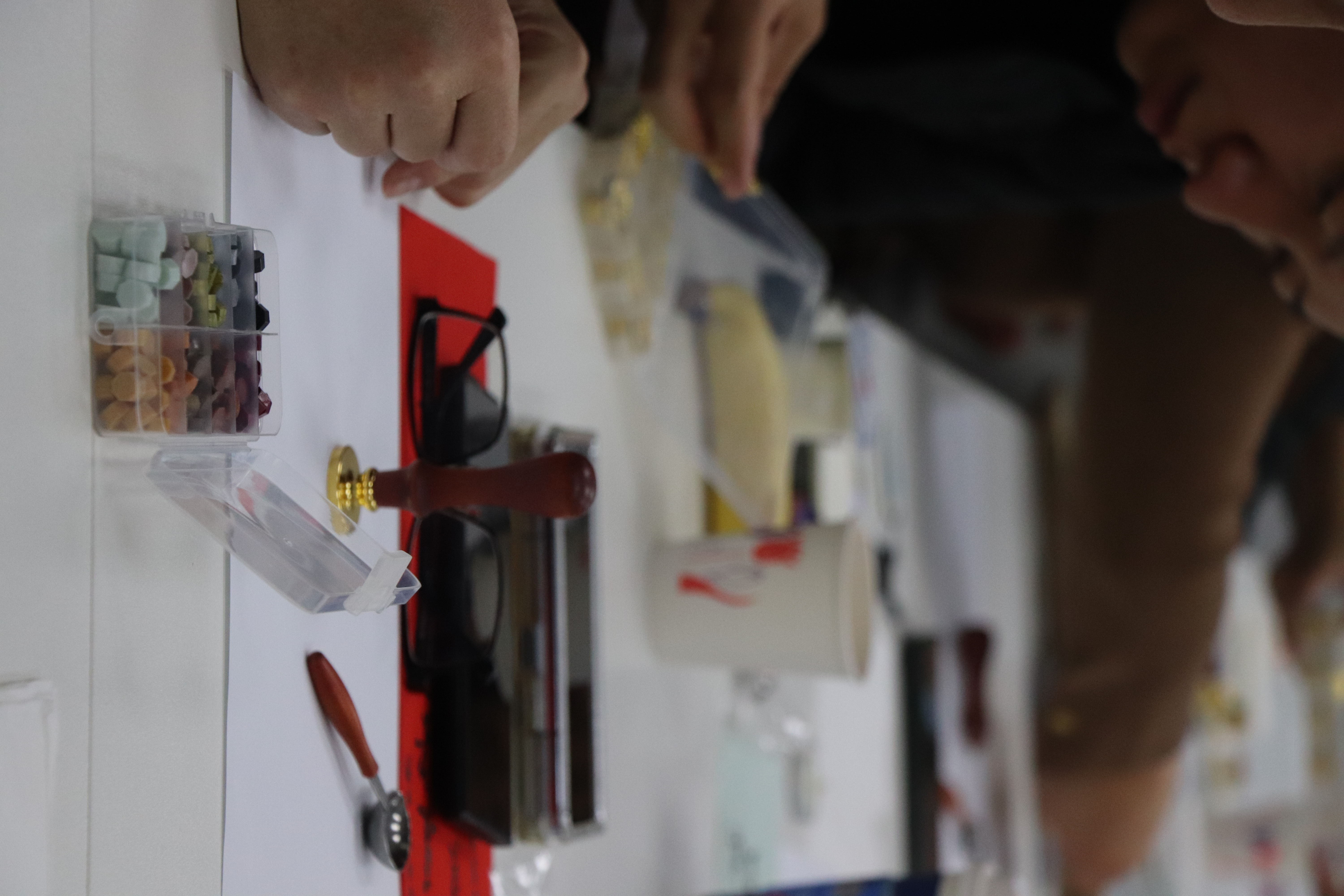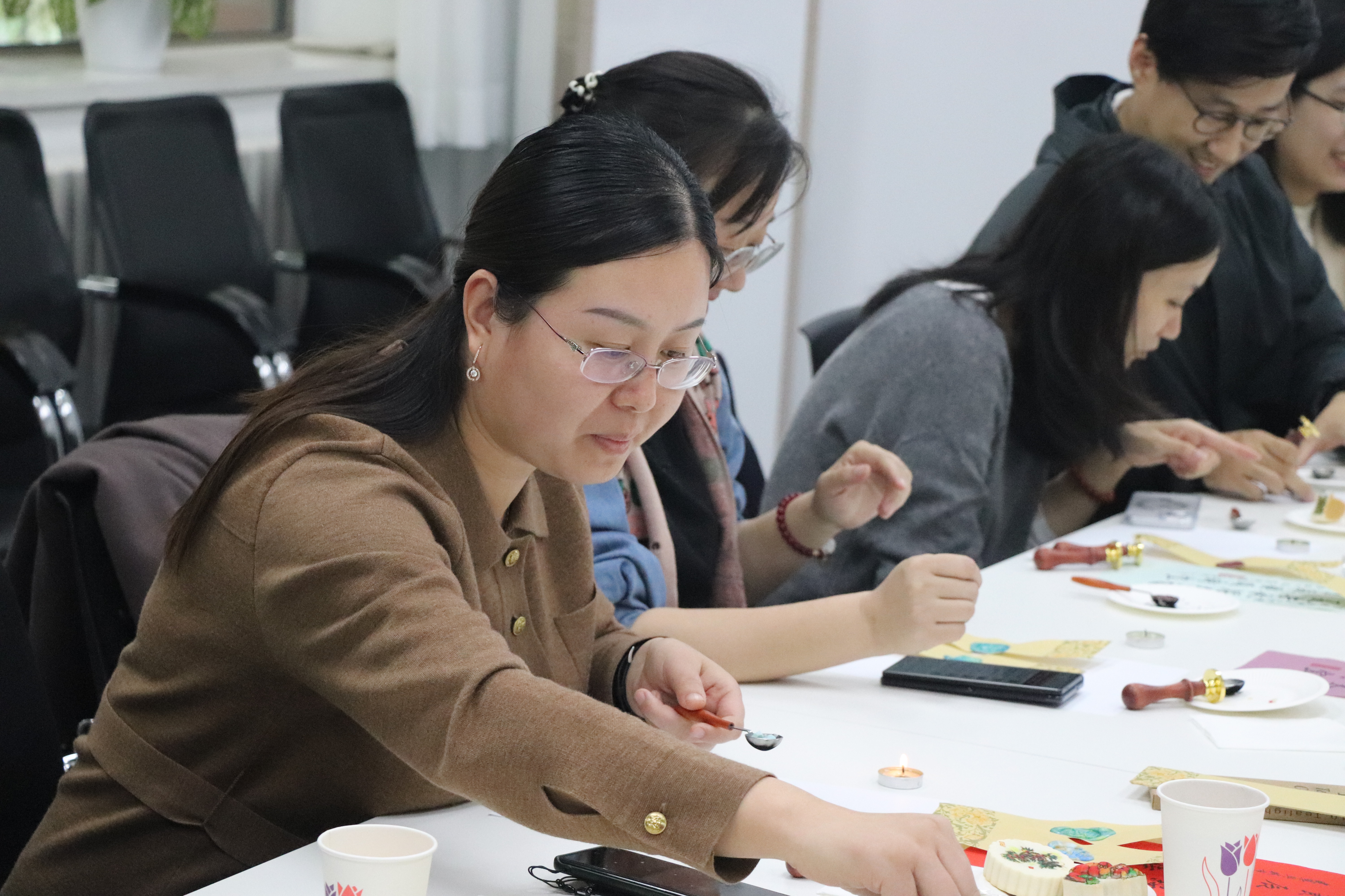 祝福仪式之后,我们迎来了生日会的特别环节——火漆印制作体验。这一活动让大家亲手体验古老而富有创意的工艺,从选材、熔蜡、到最终印制,大家在动手实践的过程中感受到艺术的魅力和创造的乐趣。通过参与这一活动,每位教职工不仅制作了自己独特的印章作品,也在心灵手作中度过了一个愉快的中午。