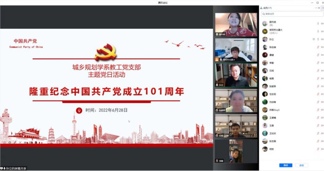 孙玉珍:认真学习了建党101周年的相关内容,传承红色基因责任大。办好一流大学靠全党,更需老中青创新奋发。立德树人中发挥作用,更要坚定信仰多传承。落实好防疫防控措施,为首都安全做出贡献。
