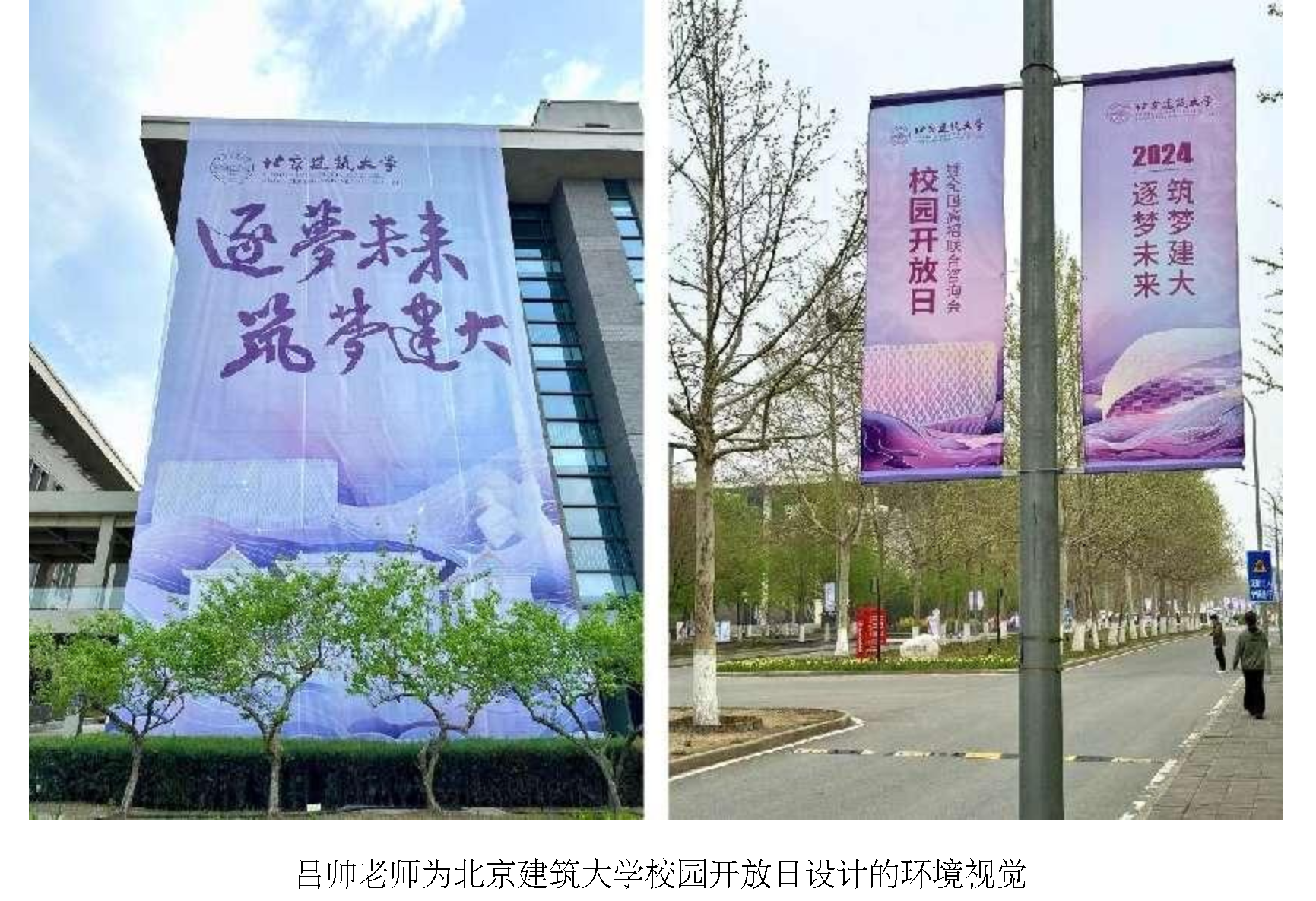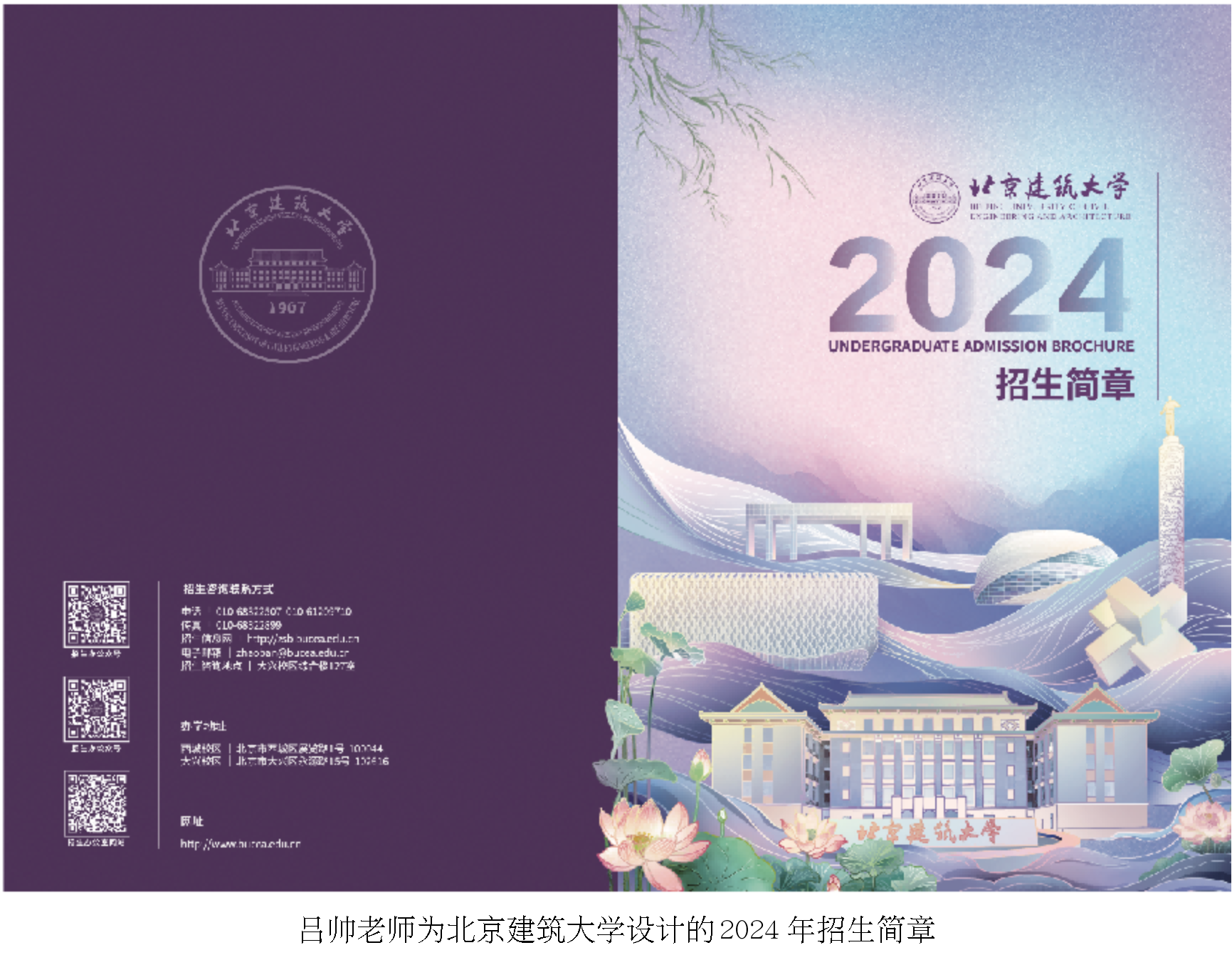 自2023年进入yl7703永利工作以来,吕帅老师多次积极参与公司、公司的视觉环境设计工作。2024年yl7703永利校园开放日暨全国高招联合咨询会引人注目,其主要视觉设计与招生简章设计均由吕帅老师主创。他融合当下深受青少年喜爱的新国风进行视觉系统设计,将yl7703永利的标志性校园建筑、景观融入其中,在延续“建大紫”作为主色调的同时,加入幻彩风格的渐变蓝、粉等色彩,增进了校园视觉的活力与亲和力。并且该视觉系统实现了全方位的立体化应用、展示,体现了公司的元素和设计学系交叉多元的专业特色,为活动增色不少。此后,吕帅老师还主创设计了当年度的本科生录取通知书及通知书系列衍生品,在互联网收获了大量好评。