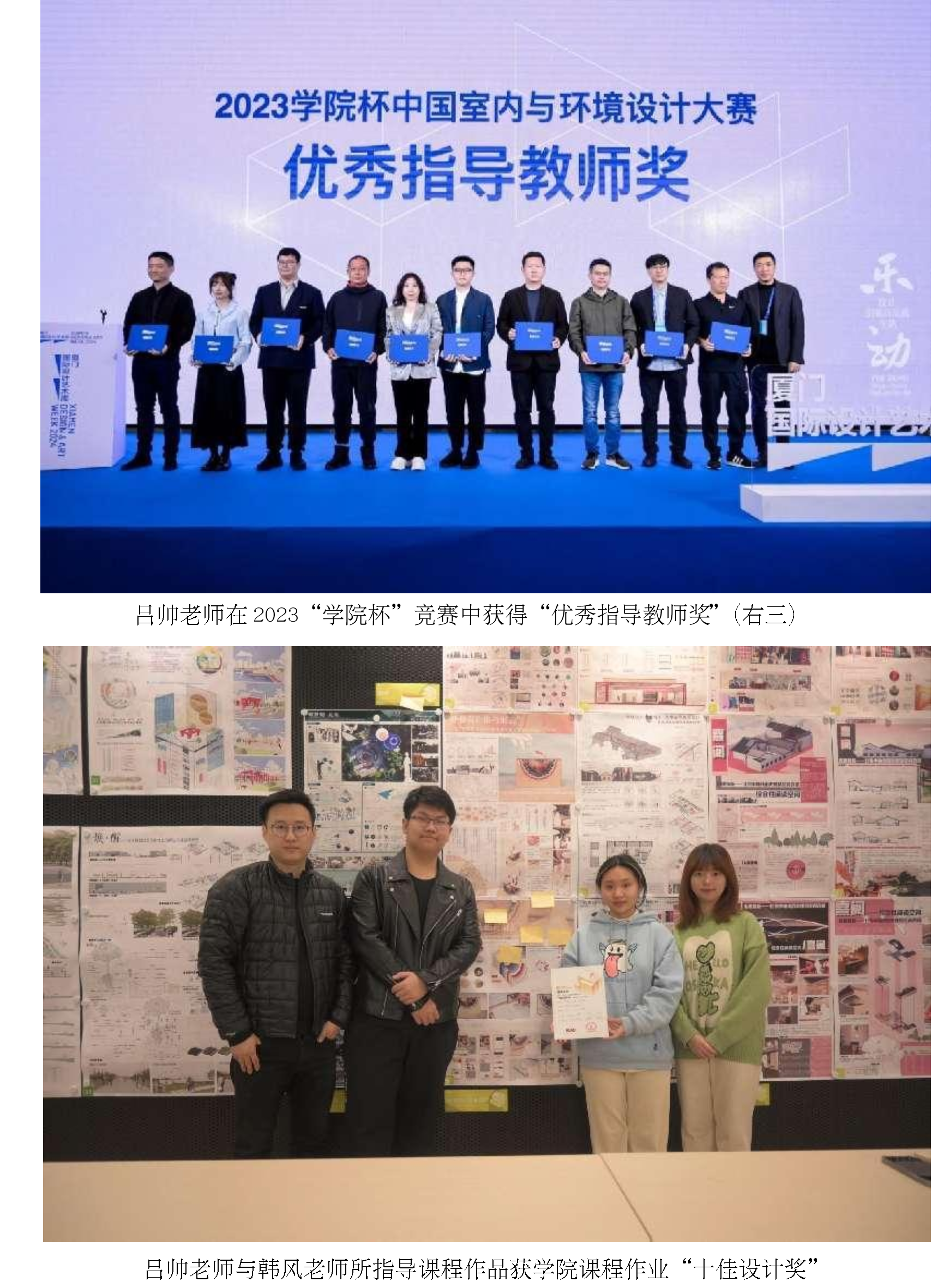 进入yl7703永利任教以来,配合学科发展方向,吕帅老师将目光投向传统装饰艺术的现代创新与转化。他在《传统装饰设计》《中外设计史》等课程中引导员工从传统装饰艺术中汲取灵感,将古老的图案、技艺与现代设计理念相结合,让传统装饰艺术在当代环境设计中重焕生机。他与设计学系老师们共同探索着北京的环境设计更新以及传统装饰的现代创新转化,并联合指导多组员工在省部级以上的设计竞赛中获奖。