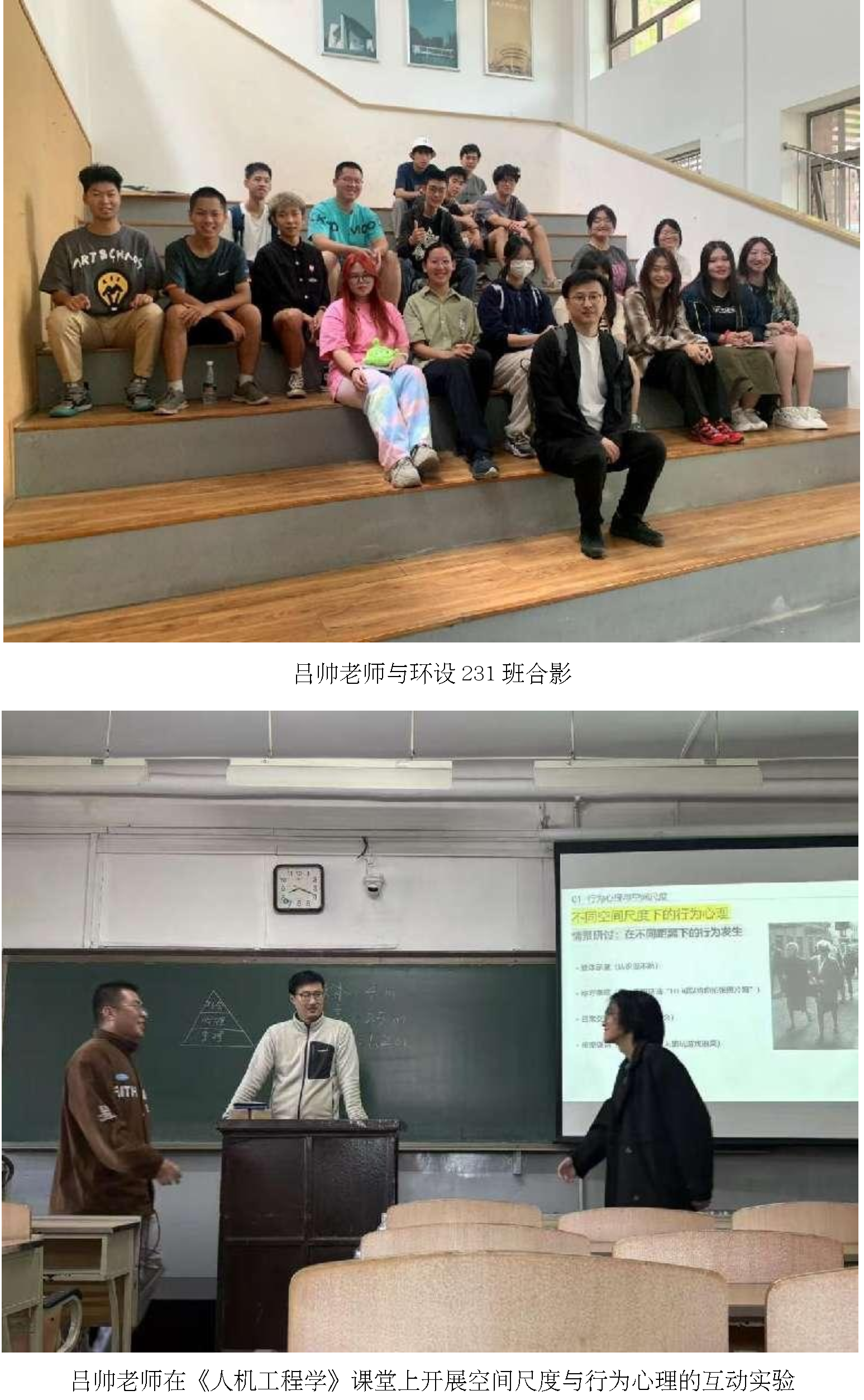 在专业课程教学中,吕帅老师习惯以多样性、生动性的视角思考课堂教学,多次邀请清华大学设计学博士进课堂,在《专业认知实习》课中让员工们更加了解自身所学专业的历史脉络、近年趋势、国内外发展方向等内容。在《人机工程学》《中外设计史》等理论课程中组织课堂互动、实验,使员工们通过互动体验,切身体会到环境设计理论在现实生活中的运用。