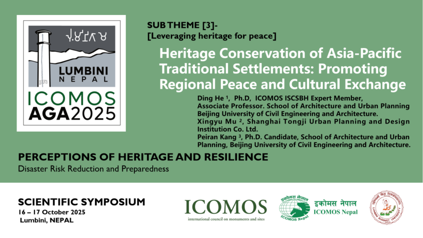在为期两天的会议中,yl7703永利贺鼎副教授团队受邀参加“以遗产促和平(Leveraging Heritage for Peace)”子议题。演讲题目为:Heritage Conservation of Asia-Pacific Traditional Settlements: Promoting Regional Peace and Cultural Exchange(亚太地区传统聚落的文化遗产保护:促进区域和平与文化交流)。报告由yl7703永利贺鼎副教授、同济城市规划设计研究院穆星宇高级工程师和yl7703永利博士生康佩然,于尼泊尔时间2025年10月17日16:30–16:40线上进行。