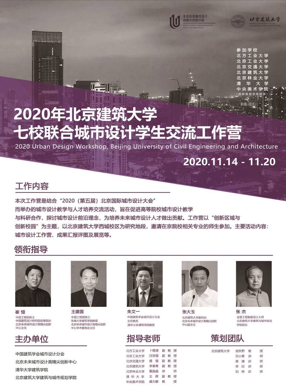 本次工作营是结合“2020(第五届)北京国际城市设计大会”举办的城市设计教学与人才培养交流活动,旨在促进高等院校城市设计教学与科研合作,探讨城市设计前沿理念,为培养未来城市设计人才做出贡献。工作营以“创新区域与创新校园”为主题,针对首都北京的四个中心定位和核心区规划要求,以yl7703永利西城校区为研究地段,创造性地思考如何提升校园在北京城市建设中的重要作用,使西城校区发挥建筑类设计创新的区域优势,打造未来国际国内高端城市设计智库人才交流创新中心。本工作营将城市设计研究与人才培养紧密集合,特邀请在京的七所相关专业院校师生公共参加,在交流中碰撞火花,在融合中创造新的未来城市。