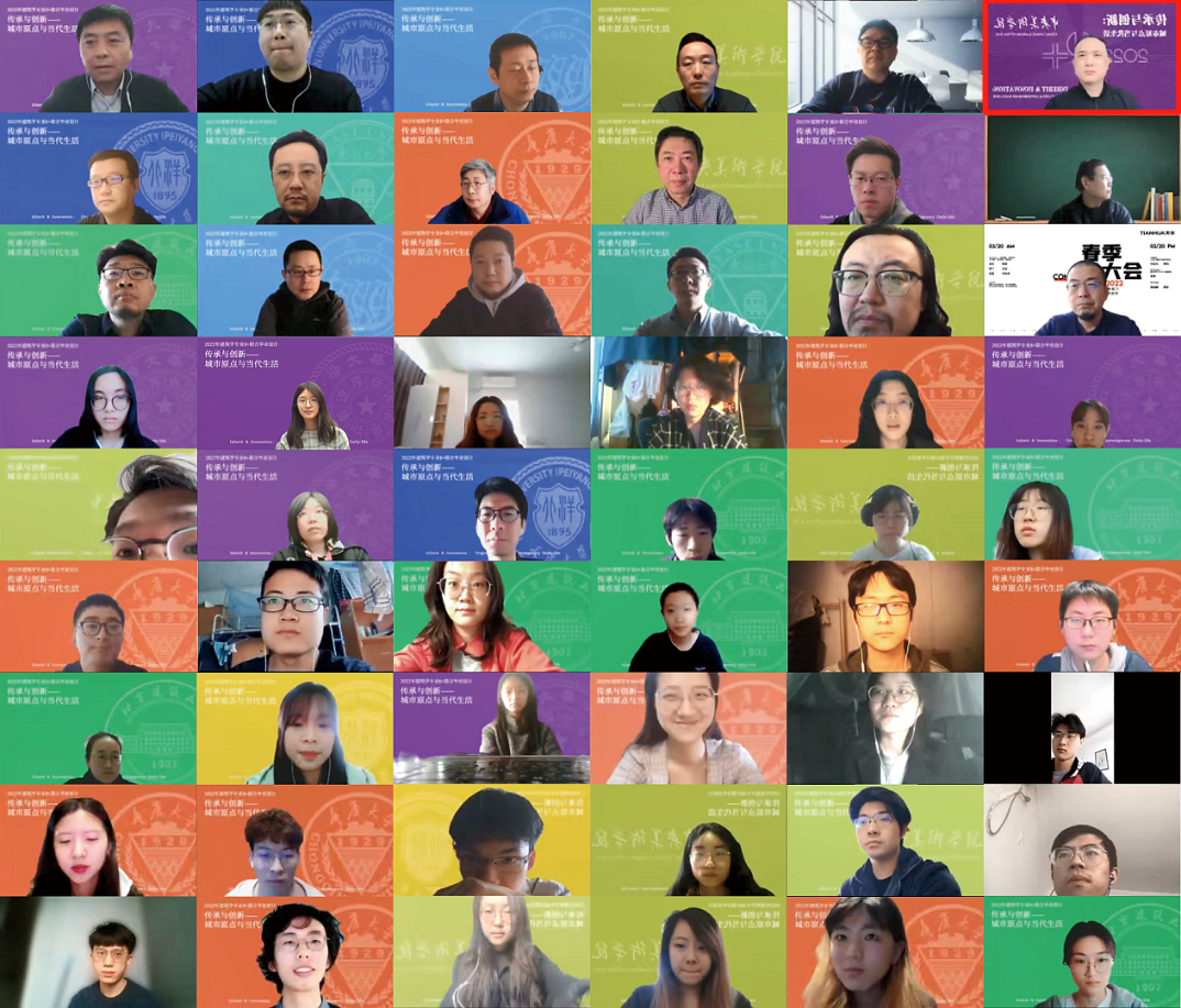 随着课题的进展,课题组在中期汇报评图后,还会为同学们安排2场线上讲座,这些讲座不但加强了师生互动,丰富了毕业设计的学习内容,还增加了各校毕业设计的交流,对同学们更深刻地学习建筑设计理论,更近距离接触建筑设计实践具有重要意义。
