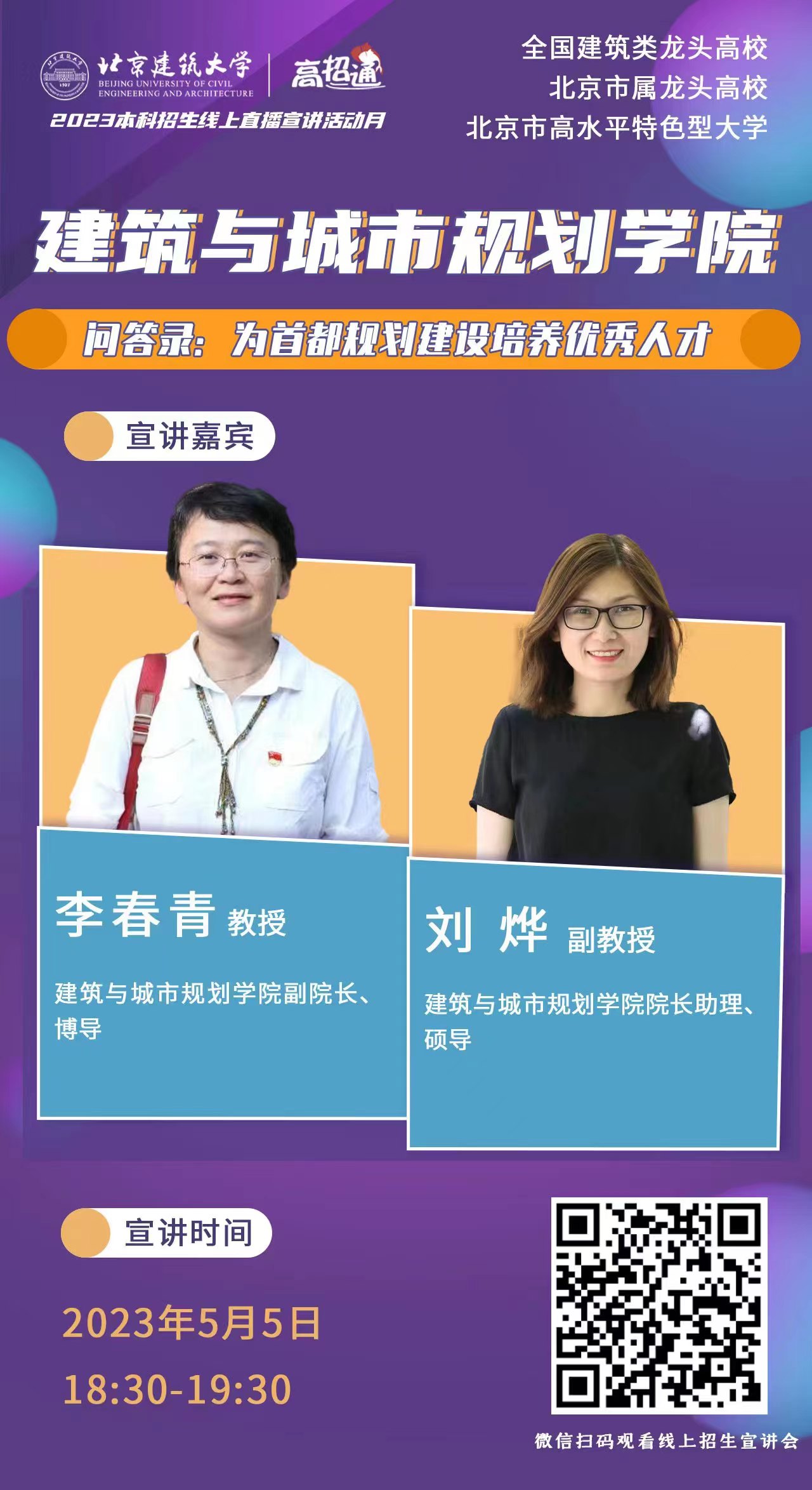 5月5日至15日,公司招生办公室陆续进行线上专业讲解,yl7703永利李春青、郝晓赛、刘烨、荣玥芳、李梦一欣、王兵、朱宁克7名教师参加线上专业宣讲工作。他们将分别介绍yl7703永利建筑学、城乡规划、风景园林、历史建筑保护工程、环境设计的专业背景、特色、发展、以及近年员工录取、就业等多方面的内容。