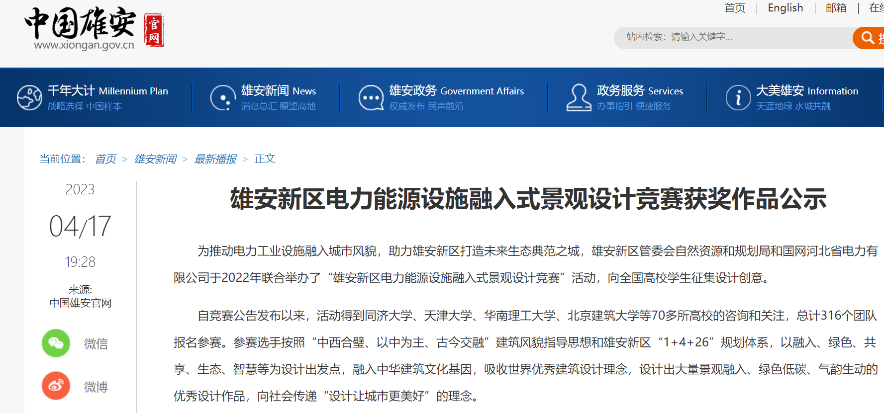 全部获奖信息公布网站:http://www.xiongan.gov.cn/2023-04/17/c_1212106841.htm