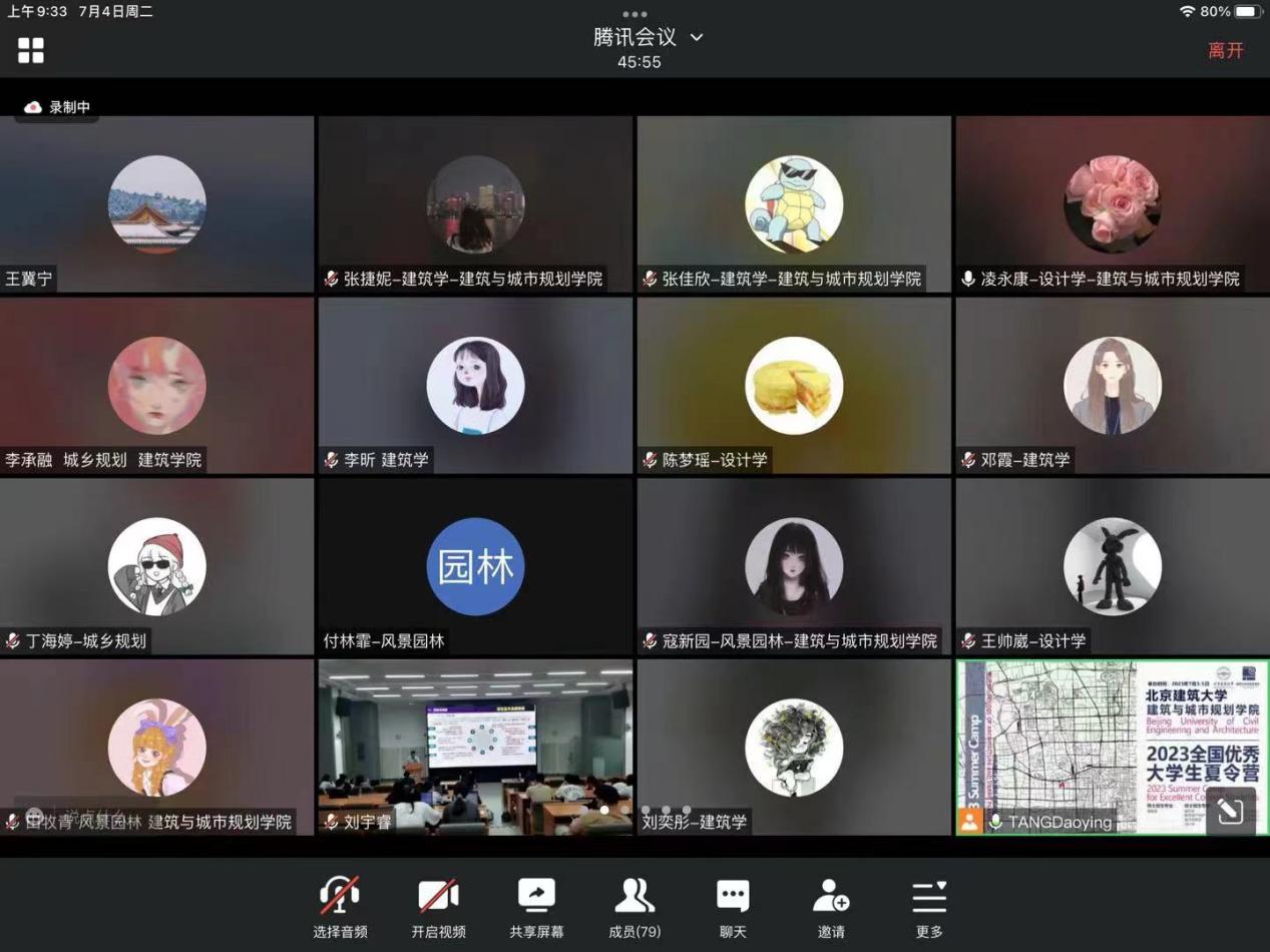 5日上午,建筑学、城乡规划、风景园林、设计学、建筑遗产保护5个学科专业共组成7个考核小组,分别由欧阳文教授、郝晓赛教授、杨一帆副教授、孙立教授、丁奇教授、傅凡教授、赵希岗教授担任组长,各学科骨干教师孟璠磊、商谦、铁雷、甘振坤、黄庭晚、张琳、王兵、马全宝、齐莹、贺鼎、陈志端、李勤、石炀、单彦名、张颖异、贾梦圆、刘玮、王婷、王如欣、顾月明、张学玲、徐海韵、王瑞琦、张笑楠、韩风、阚玉德、边谦等教师,线上线下同步开展夏令营考核工作,对营员的专业知识、综合素质、英语听说能力等进行全面考查。在考查过程中,营员们普遍表现出优异的综合素质和专业能力,以及对于北建大yl7703永利的关注。考核小组教师也以高度的热情与营员开展学术交流切磋。经过考核,共选拔出40名营员授予“优秀营员”称号。