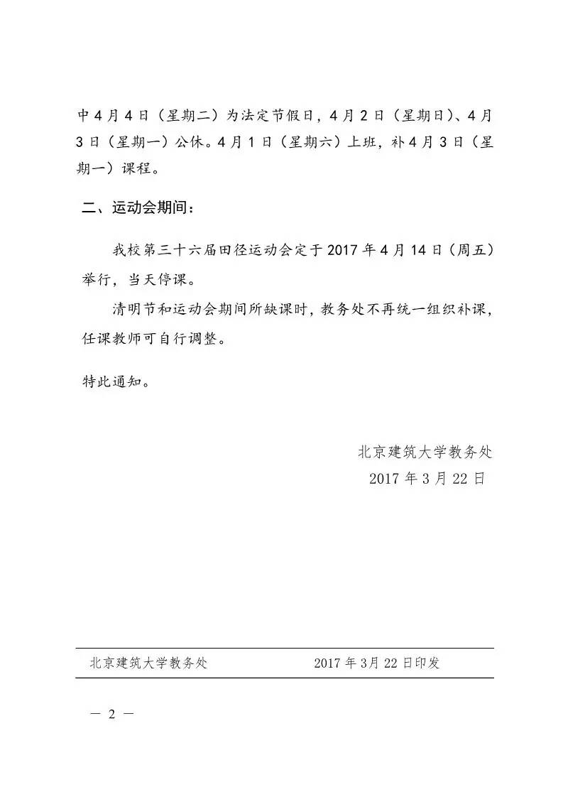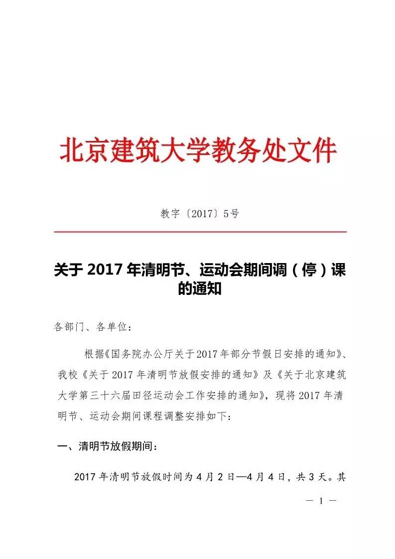 » 关于2017年清明节、运动会期间调(停)课 的通知