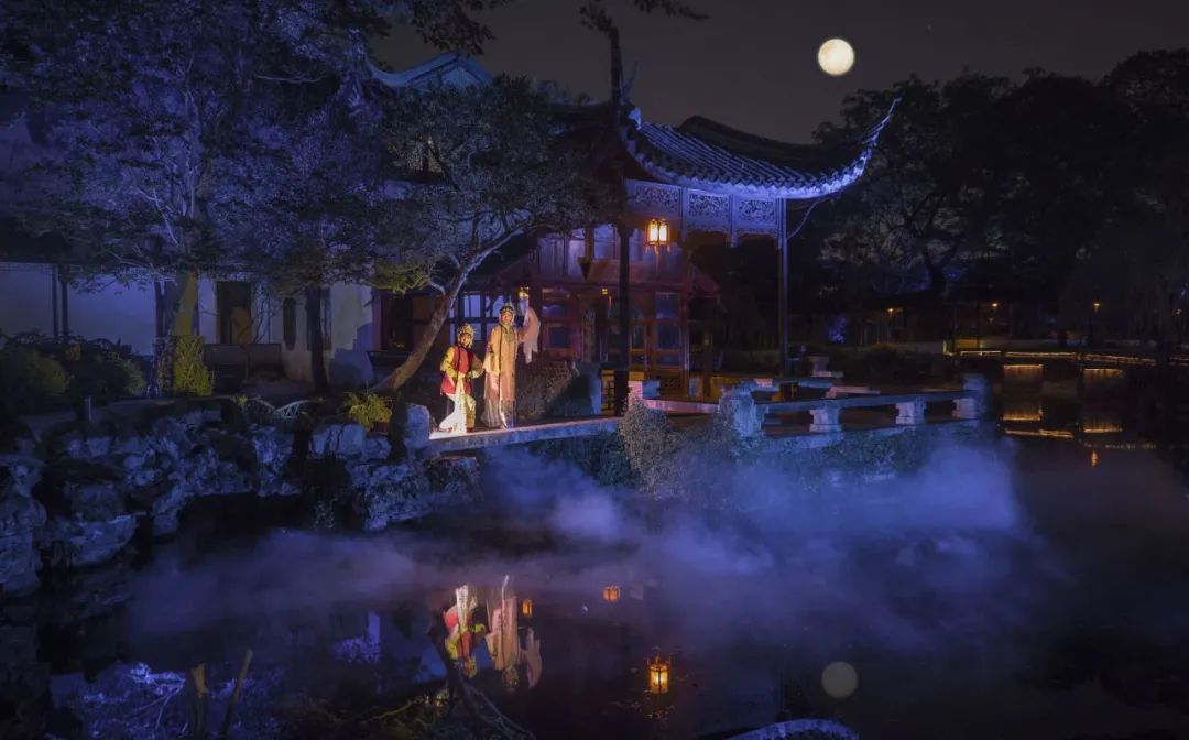 拙政园夜游中与光影技术结合的古典昆曲表演。拙政园管理处提供