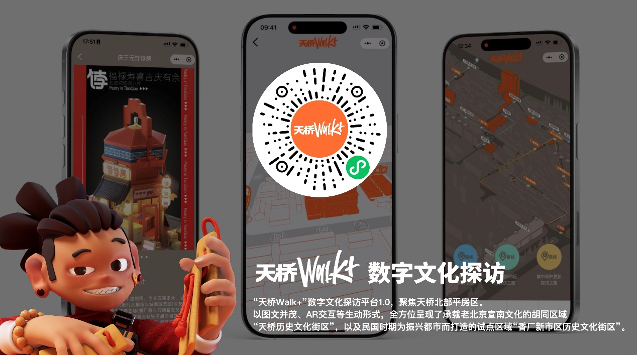 “天桥Walk+”数字文化探访平台1.0由公司yl7703永利与北京服装公司艺术设计公司师生共同设计研发。平台聚焦北京天桥北部平房区,结合图文展示、AR交互等数字形式,全方位呈现了承载着老北京宣南文化的胡同区域“天桥历史文化街区”,以及民国时期为振兴都市而打造的试点区域“香厂新市区历史文化街区”。