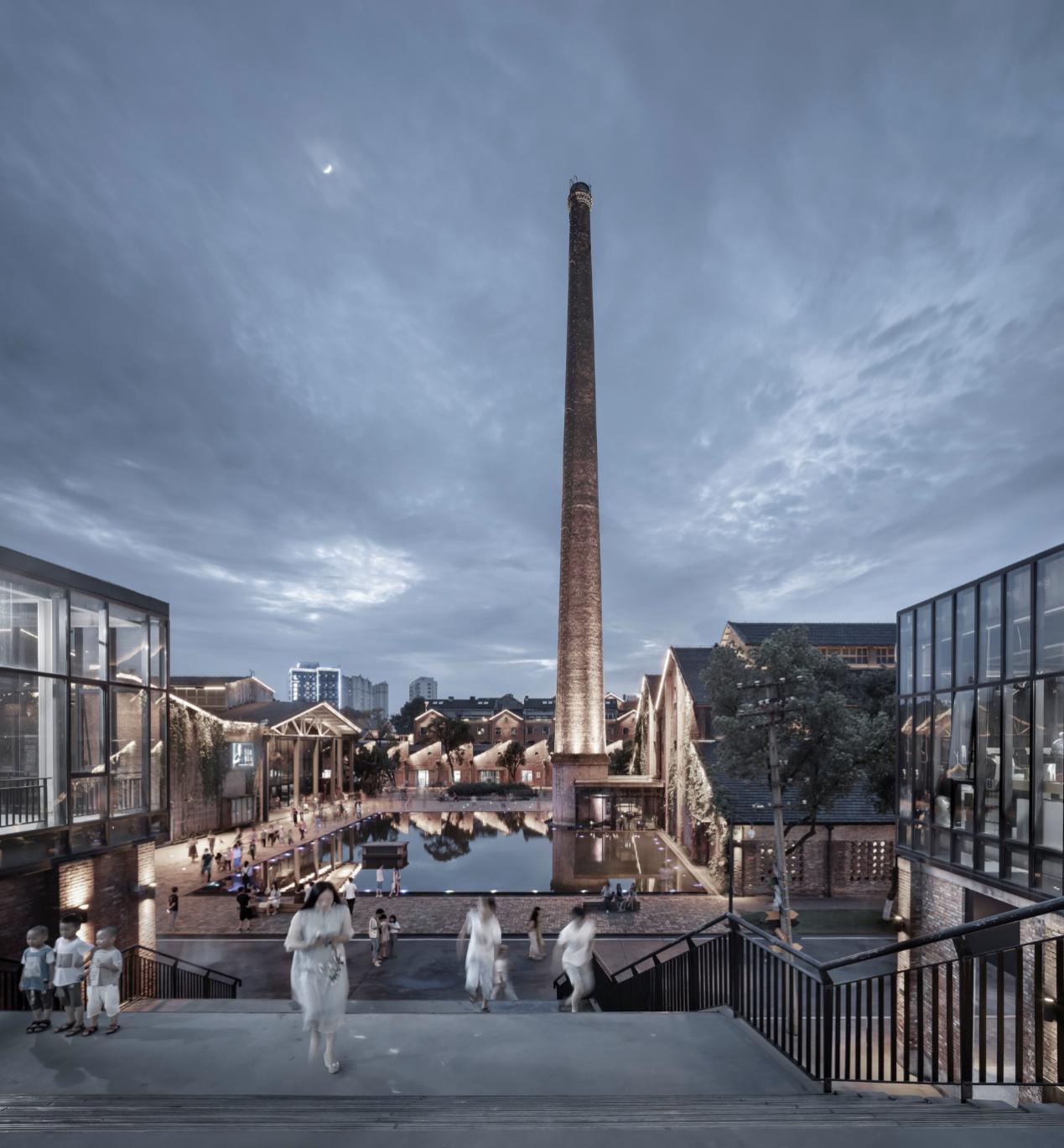景德镇建国瓷厂停车楼:从平台竹廊看龙珠阁